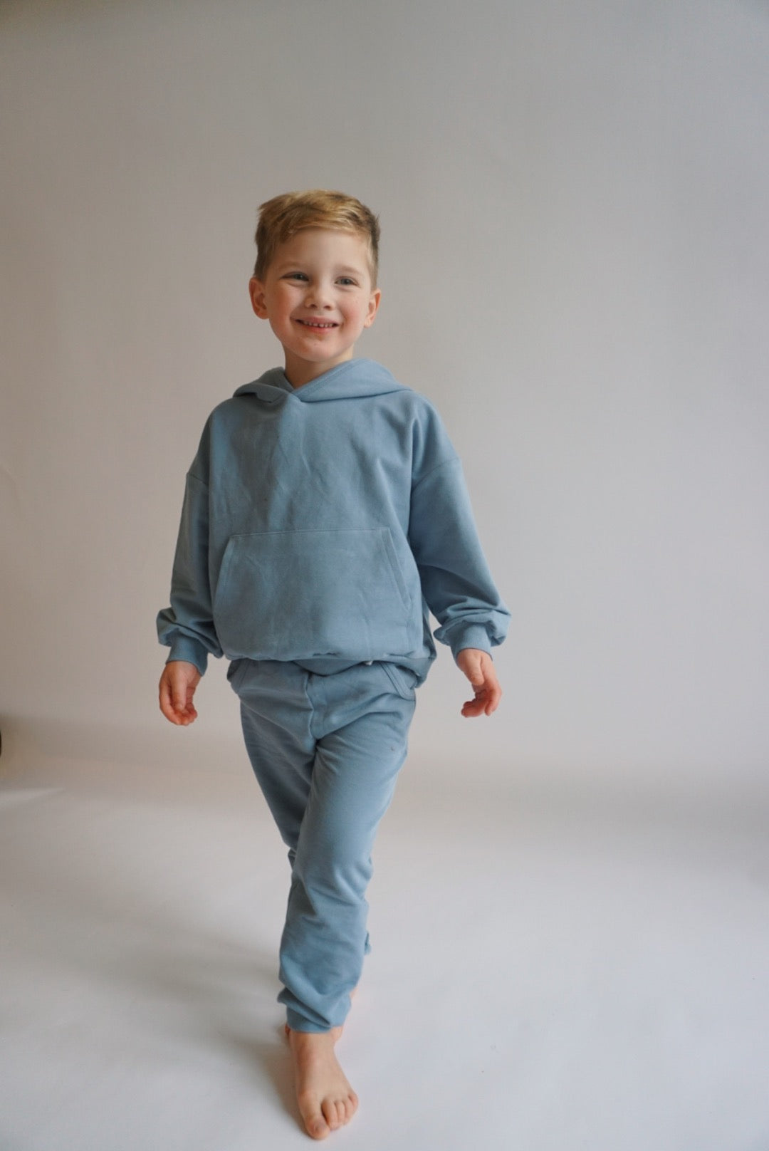 Dress your kiddo in the ultimate blend of comfort and fun in our oversized hoodie set. Designed with extra roominess in the hoodie, this set gives kids the freedom to wiggle, play, and lounge without feeling restricted. These hoodie sets feature our organic cotton blend, a functional hood, and updated functional drawstring at the waistband.